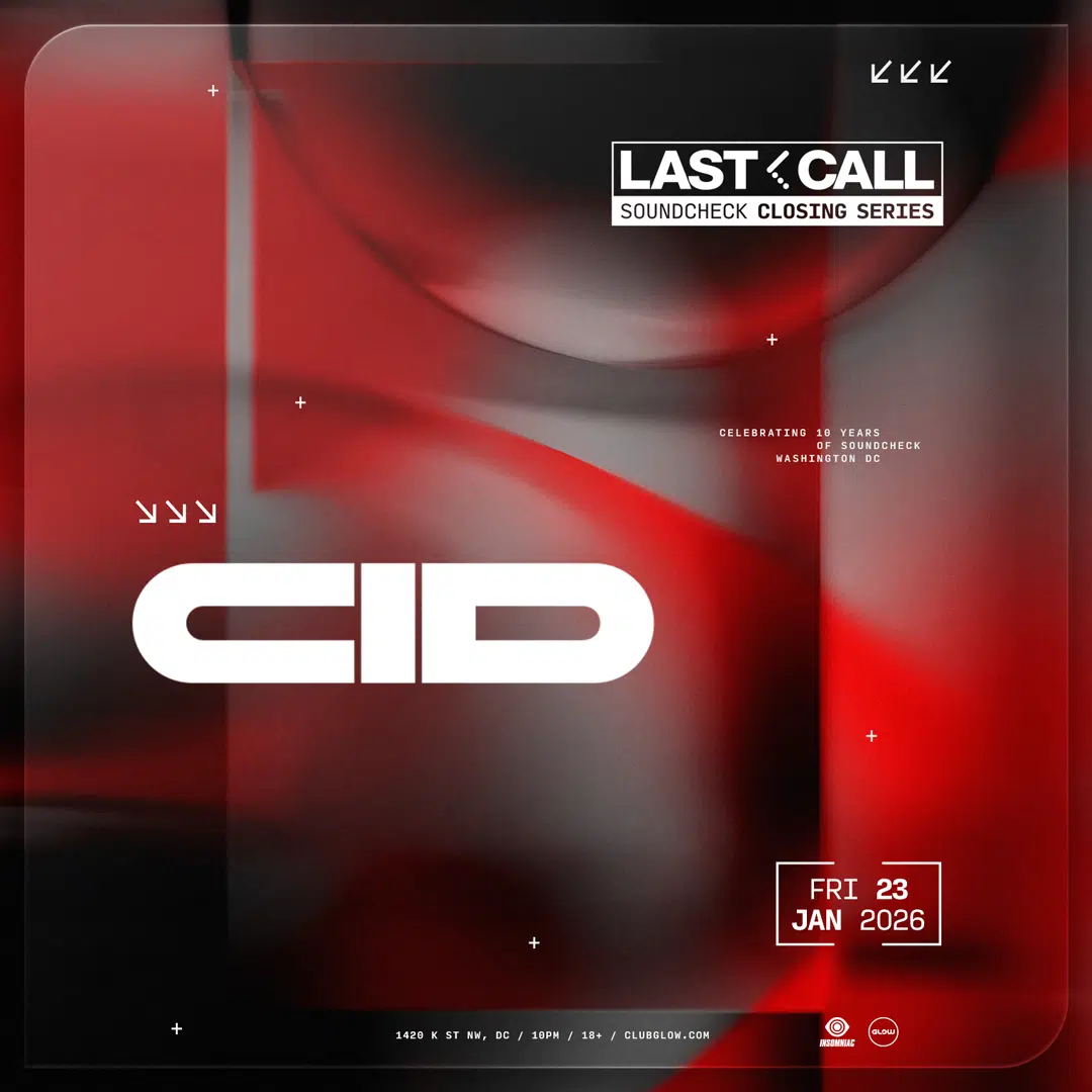 Last Call: CID [Soundcheck Closing Series]Presented by: GLOW Doors: 10 pm Ages: 18+ Event Type: Concert Music: Tech House 23,01 Get tickets