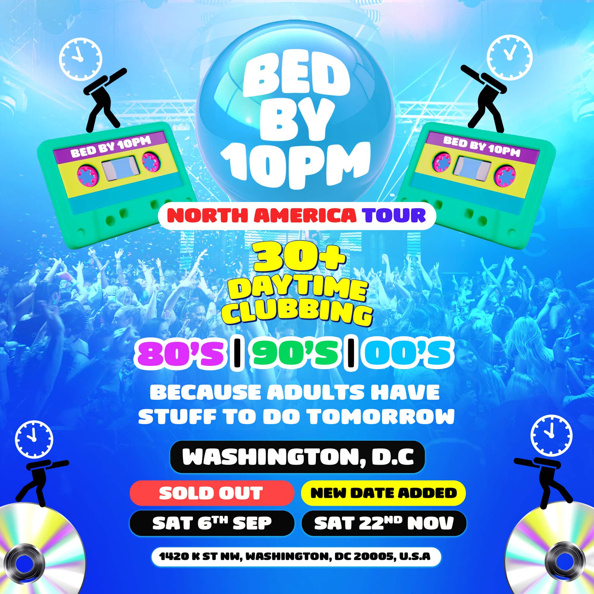 The Ultimate 30+ Daytime Clubbing Experience! ‘Because adults have stuff to do tomorrow’! Presented by: Bed By 10 Doors: 3 PM Ages: 18+ Event Type: Party Music: 80's / 90's / 00's